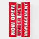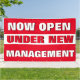 I have also done this Now Open Under New Management Small Business Large Banner in 2 sizes of window clings.