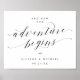Simple Elegant Calligraphy Script Wedding Reception Sign Now our adventure begins in beautiful flowing fancy letters and your personalized text. A stylish yet simple formal design in black and white or any background colour you choose. Just click the customize further link, shown under the text personalization area on the right, and choose your custom colour background. This sign poster template makes it fast and easy to create stunning additions to your wedding decor. Signs can be enlarged, there are many sizes to choose from, as well as options for custom framing and matting. Welcome custom signage.