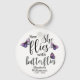 A beautiful butterfly memorial keychain. This simple quote design features the butterfly quote "Now she flies with butterflies". Personalize with a name and date.