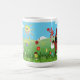 The cup features a vibrant and whimsical painting of Haji Firuz, a traditional character from Persian folklore, often associated with the celebration of Nowruz, the Persian New Year. Haji Firuz is depicted wearing a bright red costume, with a joyful expression, his face painted black, and his hands playing a tambourine. He stands in a lush meadow, surrounded by colorful flowers, green grass, and the rejuvenating glow of spring. The sun shines brightly above, casting a warm golden light over the scene, symbolizing the arrival of spring and the renewal of life. The cup captures a sense of celebration, joy, and the promise of new beginnings, evoking the lively spirit of Nowruz and the optimism that comes with the season of rebirth. The combination of bright colors, spring motifs, and the cheerful figure of Haji Firuz makes it a delightful symbol of the season.