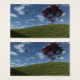 Un paysage 3D paisible au printemps ou en été, créé en Vue. Au sommet d'une colline recouverte d'herbe verte et de primroses colorées, contre un ciel bleu avec des éclats de nuages, un érablière japonais solitaire et un banc en bois sous lequel s'arrêter et se reposer. Un aigle solitaire sonne par le vent.