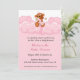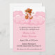Invitation de douche de bébé avec le singe mignon de bébé tenant la bouteille rose se reposant sur les nuages roses pelucheux. Il est facile customiser et venir des invitations complet avec des enveloppes et votre choix de papier.