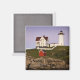 A photograph of Nubble lighthouse in York, Maine at dusk