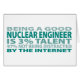 Being a Good Nuclear Engineer Is 3% Talent and 97% Not Being Distracted By the Internet. If Nuclear Engineering is your hobby, occupation, or obsession, show it with great Nuclear Engineering t-shirts, mugs, stickers, and more. They're also great gifts for other Nuclear Engineering fans!