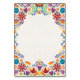 This Nuestra Boda Flowers Botanical Spanish Wedding Table Number design showcases a rich and vibrant floral arrangement around the edges, with bold colors like red, orange, blue, purple, and yellow that create a festive and welcoming feel. The flowers are intricately combined with leafy patterns and small, detailed embellishments, giving the design a lively and textured look. The balance of bright, contrasting colors and the delicate, symmetrical arrangement make this an eye-catching option for a celebratory wedding stationery, especially one with a traditional or folkloric theme.