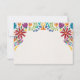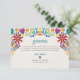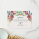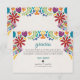 This Nuestra Boda Flowers Botanical Spanish Wedding Thank You Card design showcases a rich and vibrant floral arrangement around the edges, with bold colors like red, orange, blue, purple, and yellow that create a festive and welcoming feel. The flowers are intricately combined with leafy patterns and small, detailed embellishments, giving the design a lively and textured look. The balance of bright, contrasting colors and the delicate, symmetrical arrangement make this an eye-catching option for a celebratory wedding stationery, especially one with a traditional or folkloric theme.