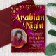 Entrez dans un monde de mystère et soyez enchanté par cette invitation à une Nuit arabesque. Cette invitation a été rendue spéciale en utilisant une couleur de fond captivante avec des décorations dorées et diamantées complémentaires pour capturer la vibrance et l'attrait d'une fête sur le thème arabe.