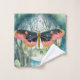 Un délicat papillon rose et brun contre l'arrière - plan d'une mystérieuse forêt bleue et verte.