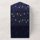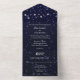 Invités Invitations à votre prochain mariage avec une Nuit étoilée Tout en un mariage Invitation. Le design Invitation présente un ciel nocturne orné d'étoiles blanches avec une carte RSVP perforée. Personnalisez avec les noms du marié et de la mariée ainsi que la date et l'emplacement du mariage. Papier à lettres mariage supplémentaire disponible avec cette conception aussi.