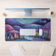 Tapis de bureau avec une belle illustration. L'ambiance fantaisiste et fantaisiste. Un beau paysage d'arbres, de montagnes et d'une rivière sinueuse. Une vision mystique.