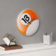 This wall clock features a number 13 billiards ball design.