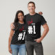 Black tee shirt with "Dad you're #1" set across the front in bold, red and white typographic design. Great gift for father's day or birthday.