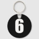 number 6 in white on black button keychain