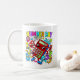 This colourful Number Day maths mug features a fun calculator character