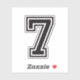 Number seven sticker. Sports college font in black. The complete alphabet and numbers 0-9 are available.