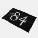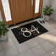 Welcome guests in style with this modern doormat, featuring a bold numerical house number alongside elegant text on a sleek black background. The large monogrammed font and minimalist colour palette in black, white, and grey create a contemporary statement for any new home or stylish entryway. Customize with your own number and message for a personalized, sophisticated touch.
