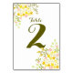 Une belle illustration orne cette carte de numéro de table de la table de réception thématique du jardin d'été ou du printemps. Orné de fleurs et bourgeons jaunes et or gais, de baies framboises claires, de feuilles verts luxuriants et d'un texte vert olive profond sur un arrière - plan blanc immaculé. La typographie et le style modernes ajoutent un charme contemporain tandis que le design tendance et joyeux du jardin est parfait pour un mariage de printemps, d'été ou de jardin extérieur.