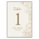Surprise botanique or ivoire crème pour le numéro de table de célébration du 50e anniversaire de mariage. Design moderne minimaliste avec accents botaniques et police de caractères script. Carte florale simple parfaite pour une fête élégante.
