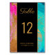 Elégante carte de table mariage de peinture acrylique sophistiquée dans une palette de couleurs vives rose, turquoise, jaune or et noir avec des touches abstraites et faux or moderne script de typographie contemporaine entièrement modifiable. +++++++++++++ La carte convient à toutes les saisons des réceptions de mariage à la mode urbaine et chic