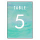 Ces jolies cartes de numéro de table indiqueront à vos invités dans la bonne direction ! Le design présente du texte blanc sur un fond aéré de traits d'aquarelle turquoise. Parfait pour les mariages plage ou de destination ! Coordonner les accessoires disponibles dans notre boutique.