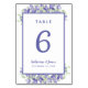 Un modèle pour n'importe quel numéro cet élégant Mariage floral aquarelle Table Number design dispose d'un design de jardin botanique classique avec des tons élégants de fleurs bleues de périwinkle avec une douce verdure luxuriante sur un arrière - plan blanc immaculé. Personnalisez la conception de table mariage avec vos noms, date mariage et numéro de table dans des lettres et des scripts tendance. Le dos de la carte est un double de l'avant. Customisez facilement et commandez-en un pour chaque table avec les numéros de table individuels.