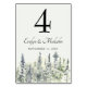 Cette carte de numéro de table est parfaite pour votre mariage de chalet de montagne ou d'autres événements avec un thème boisé ou forestier. Elles ont un style simple mais élégant avec un accent illustrant une forêt de pins de grande taille ou à feuillage persistant dans les tons vert sauge, gris et vert pâle. L'aquarelle douce a une qualité calme et paisible, qui vous rappellera que le brouillard se lève sur un vitrage boisé. Des lettres classiques et élégantes dans un vert à la sauge foncée coordonnent le numéro de la table, les noms de la mariée et du marié et la date du mariage.