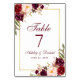 Numéro De Table Aquarelle Floral Bourgogne et Mariage or