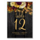 Numéro de table de mariage rustique et élégant avec texte modifiable avec botaniques d'automne et un script chic sur un arrière - plan en bois de grange brun foncé avec lumières à cordes. Idéal pour votre été ou automne jardin jardin d'automne en plein air ou mariage de ferme.