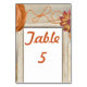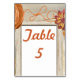 Design rustique d'automne, cette carte est décorée sur le thème orange et marron. Belles fleurs orange et bois brun passez votre commande aujourd'hui! Carte de table Design : WeddingsbyRhoadie OEuvre florale : Oberholster Venita