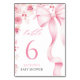 Complete your baby shower table decor with these Baby in Bloom table numbers. Featuring blush pink watercolor florals and a dainty coquette bow, they add a soft and elegant touch to your celebration, perfect for a spring or summer baby girl shower.