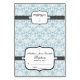 Carte de table damassée bleue avec de jolies zones de texte noir et blanc avec de jolies croix et perles bleu bébé. Vous pouvez facilement personnaliser ces élégantes cartes de table damassées bleues pour votre événement en ajoutant simplement vos détails dans le style de police et le libellé de votre choix. Vous pouvez déplacer ou supprimer les croix.