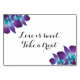 L'amour de l'orchidée Dendrobium est doux, violet et bleu turquoise, prenez un signe mariage délicieux. Simple design de panneaux mariages qui présente une belle variété d'orchidées appelée dendrobium bleu. Il est turquoise / turquoise dans la couleur associée à violet et violet royal violet. Un grand choix de fleurs pour le thème de la couleur mariage paon. Vous pouvez changer le libellé en quelque chose d'autre si vous voulez. Ce panneau est 3"x5".