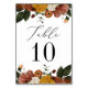 Elégante carte de numéro de table fleurie d'automne avec bouquets de fleurs d'aquarelle et feuillage dans les tons de terre d'ivoire, marigold, bordeaux, rose poussiéreux et vert olive. Personnalisez le numéro de chaque carte de table et ajoutez-le à votre panier. Conçu pour coordonner avec notre collection Boho Autumn Floral mariage.
