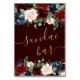Sophistiquée aquarelle fleurie douche, anniversaire, ou réception "Dessert Bar" signalisation de table avec marsala rouge bordeaux et rose rousse tête-bordé peinte à la main avec des fleurs d'accent bleu marine embellie par le laurier botanique et le rouge foncé. De la collection "Boho Bloom", cette disposition intègre de riches fleurs sauvages bohèmes aux fleurs éclatantes et au feuillage vert d'eucalyptus. Pour d'autres couleurs ou produits correspondants, veuillez visiter le magasin JustFharryn Zazzle, ou contacter le concepteur, c/o Fharryn@yahoo.com Tous droits réservés. #bohochic #zazzlemade
