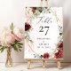 Numéro De Table Boho bordeaux or floral géométrique eucalyptus