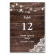 Habille tes tables de mariage ou de fête avec ce chic bois, dentelle, lumières à cordes Carte Numéro de tableau.
