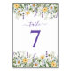 Numéro De Table Bordure aquarelle de fleurs sauvages violettes