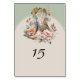 Carte Numéro de tableau avec bottes de cowgirl florales bohème, roses et fleurs de campagne. Le design se compose de lettrage vintage, placé dans une élégante forme d'arc moderne, sur une couleur de base de vert sauge et beige neutre. Parfait pour les thèmes boho floral, western, équestre, rodéo et champêtre à tout moment de l'année. Pour coordonner les invitations, la papeterie, les cadeaux et la décoration de fête, s'il vous plaît parcourez mon Boho Floral Cowgirl Boots Quinceanera Collection.