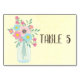 Bouquet floral campagne dans un pot Mason sur fond texturé. Personnalisez avec les informations de table / événement sur l'avant et l'arrière