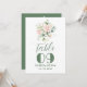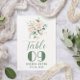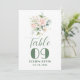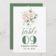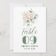 Illustration aquarelle d'un bouquet de roses rose pastel pour un numéro de table de mariage—double face avec couleurs réversibles blanches et vert olive.