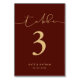 Design moderne et minimaliste dans des couleurs bordeaux/or pour vos numéros de table mariages personnalisés. Customisez-le par vous-même !