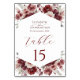 Numéro De Table Bourgogne Rustique Automne Floral Mariage