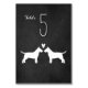 White Bull Terrier marié et marié silhouettes avec coeur. Une carte de table de réception de style tableau noir pour les amoureux de Bull Terrier. Chaque carte doit être numérotée et ajoutée au panier séparément. Visitez Jenn's Doodle World pour encore plus de cartes de table pour chiens de races et de produits de planification mariages à thème Bull Terrier.