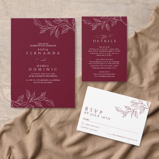 Guide your guests in style with this burgundy chic botanical wedding table number card. The design features a rich burgundy background with delicate white botanical line art, creating a clean and elegant look. The bold table number stands out clearly, making it easy for guests to find their seats.