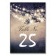 Cette carte de numéro de table est parfaite pour le mariage extérieur sous l'arbre décoré de cordes de lumières