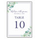 Numéro De Table Chic Script Green Foliing Marine Bleu Mariage fron