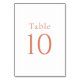 Simple et élégant avec un charme minimaliste, cette belle carte de numéro de table mariage en blanc avec agrumes orange texte a un look moderne propre. Peu importe la couleur que vous utilisez pour les fleurs de votre mariage, les demoiselles d'honneur ou les vêtements de mariée, la simplicité des numéros de table permet à votre schéma de couleurs mariages de briller ! REMARQUE : Pour créer une carte de table pour chaque table, vous devez les créer une par une. Modifiez le numéro du tableau, c'est-à-dire le tableau 1 et ajoutez au panier. Modifiez ensuite le tableau numéro 2 et ajoutez au panier. Faites ceci pour chaque table dont vous aurez besoin jusqu'à ce que tous les nombres soient créés. Une fois que vous les avez tous ajoutés au panier, vous pouvez terminer le processus de retrait.