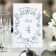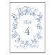 Numéro De Table Classic French Blue Flowers & Ribbons Wedding