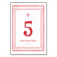 Valentines roses et rouges Cartes Numéro de table