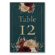 Numéro De Table Dark Teal Floral Gothic Wedding Table Number